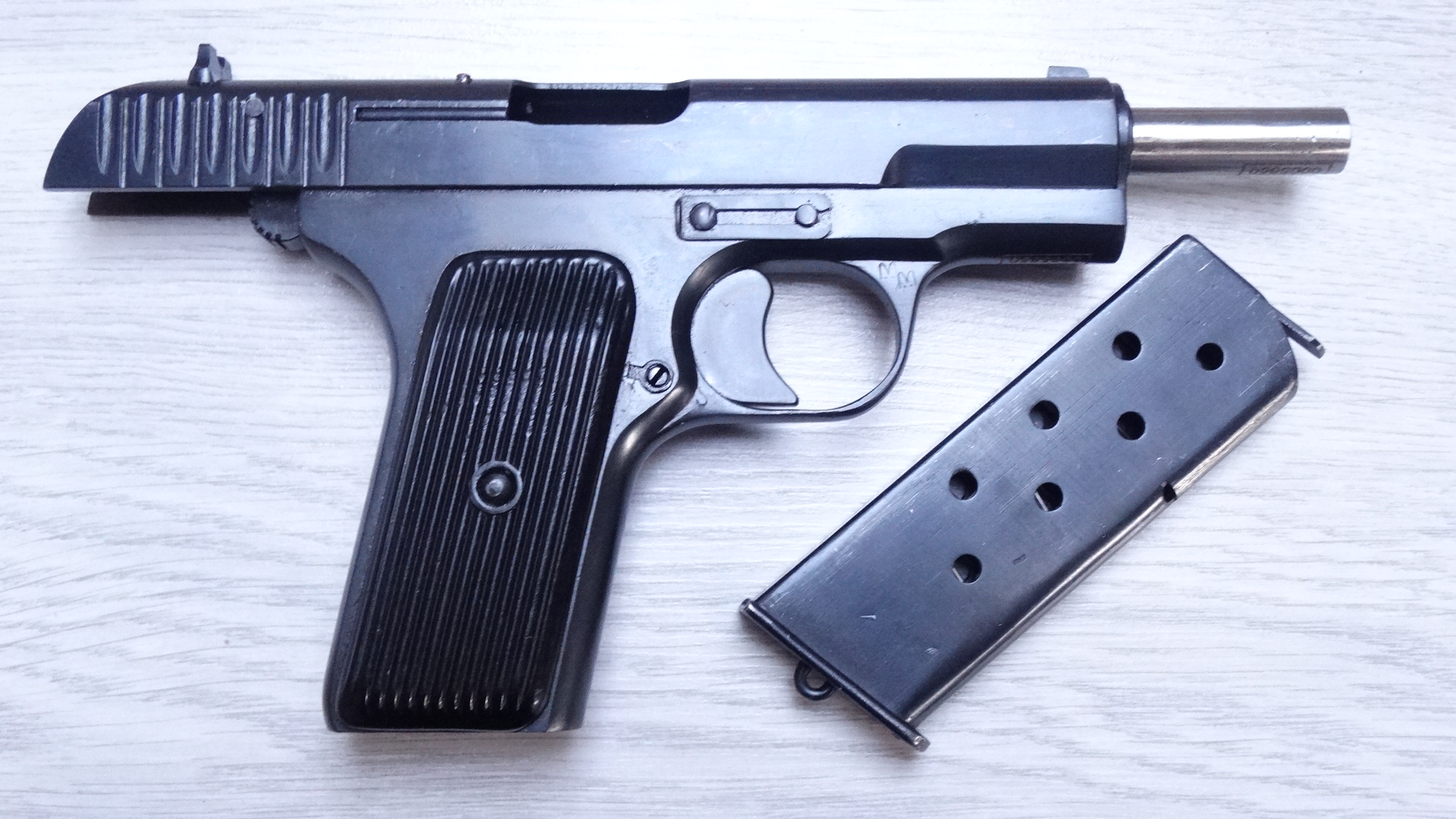 Pistolet TT wz.33 (ros. Tulski Tokariewa, potocznie tetetka, oficjalnie 7,62 мм пистолет самозарядный обр. 1933 года) – samopowtarzalny pistolet konstrukcji radzieckiej (pistolet wzór 1933). Działa na zasadzie krótkiego odrzutu lufy.Pistolet strzelał nabojami kaliber 7,62 x 25 mm TT(zaadaptowany nabój Mauser 7,63 x 25). Zasilany z magazynka wymiennego o pojemności 8 nabojów. Podstawowy Sowiecki pistolet wojskowy, produkowany do 1967 roku.